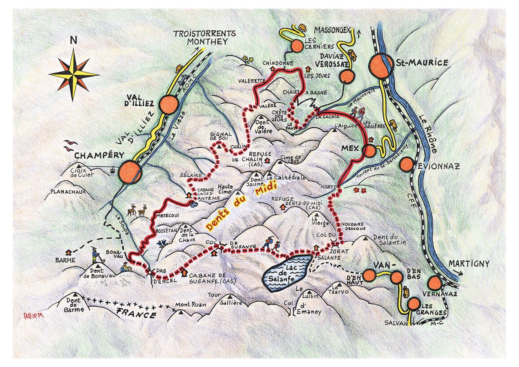 - Le tour complet de ce massif franco suisse avec des passages pitorresques chaque jour : pas de la bide, Pas d'Encel, Pas de l'Ours et échelles des Ottans