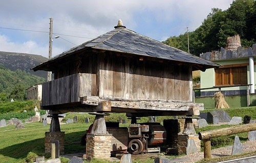 C’est sur cet itinéraire que le roi des Asturies est partit attester des reliques de St Jacques, on est vite dans l’ambiance avec les petits villages garnis d’ermitas et de horreos reliés par des chemins ancestraux : les calzadas. Les fameux greniers :